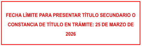 3. Título Secundario: original y fotocopia -a fin de constatar la fidelidad de la misma- o Constancia de título en trámite emitida por la institución de nivel medio donde se cursó el secundario.