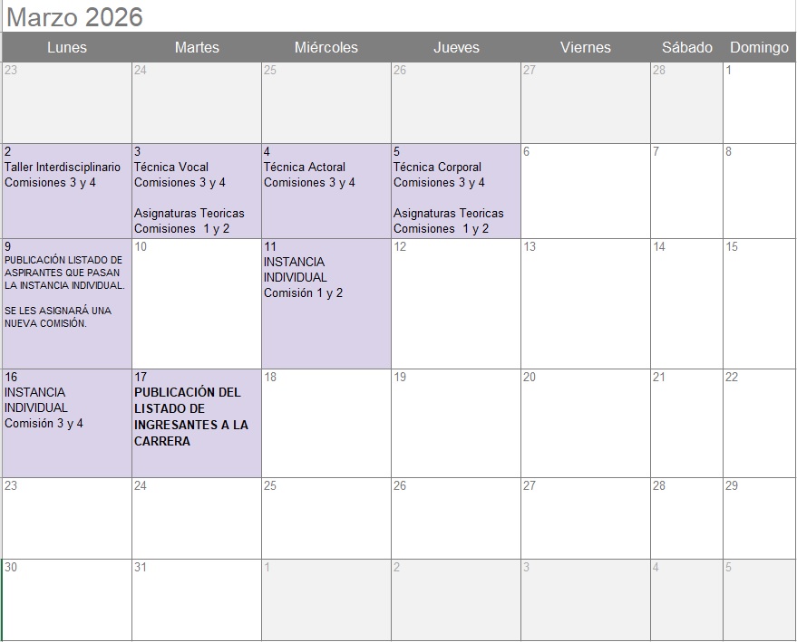En el momento de la inscripción, a cada aspirante se le asignará una COMISIÓN con la cual desarrollará la primera etapa del periodo de ingreso. El cronograma con las fechas correspondientes a cada COMISIÓN, figura en el PUNTO 3.