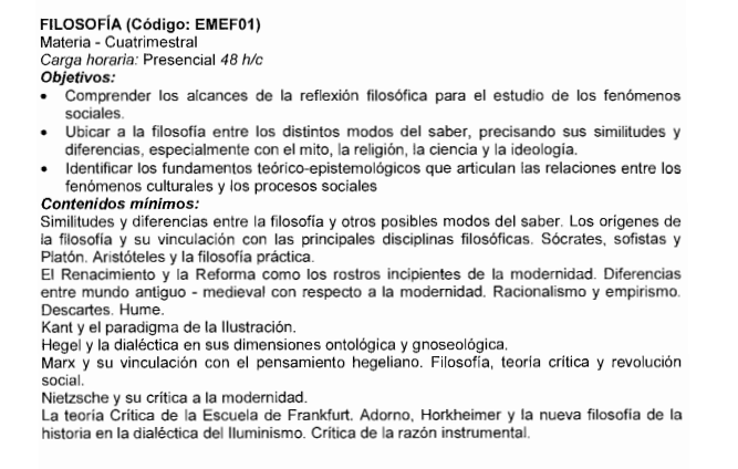 Asignatura: FILOSOFÍA de la TECNICATURA SUPERIOR EN PUESTA EN ESCENA – CUATRIMESTRAL- 2º Cuatrimestre