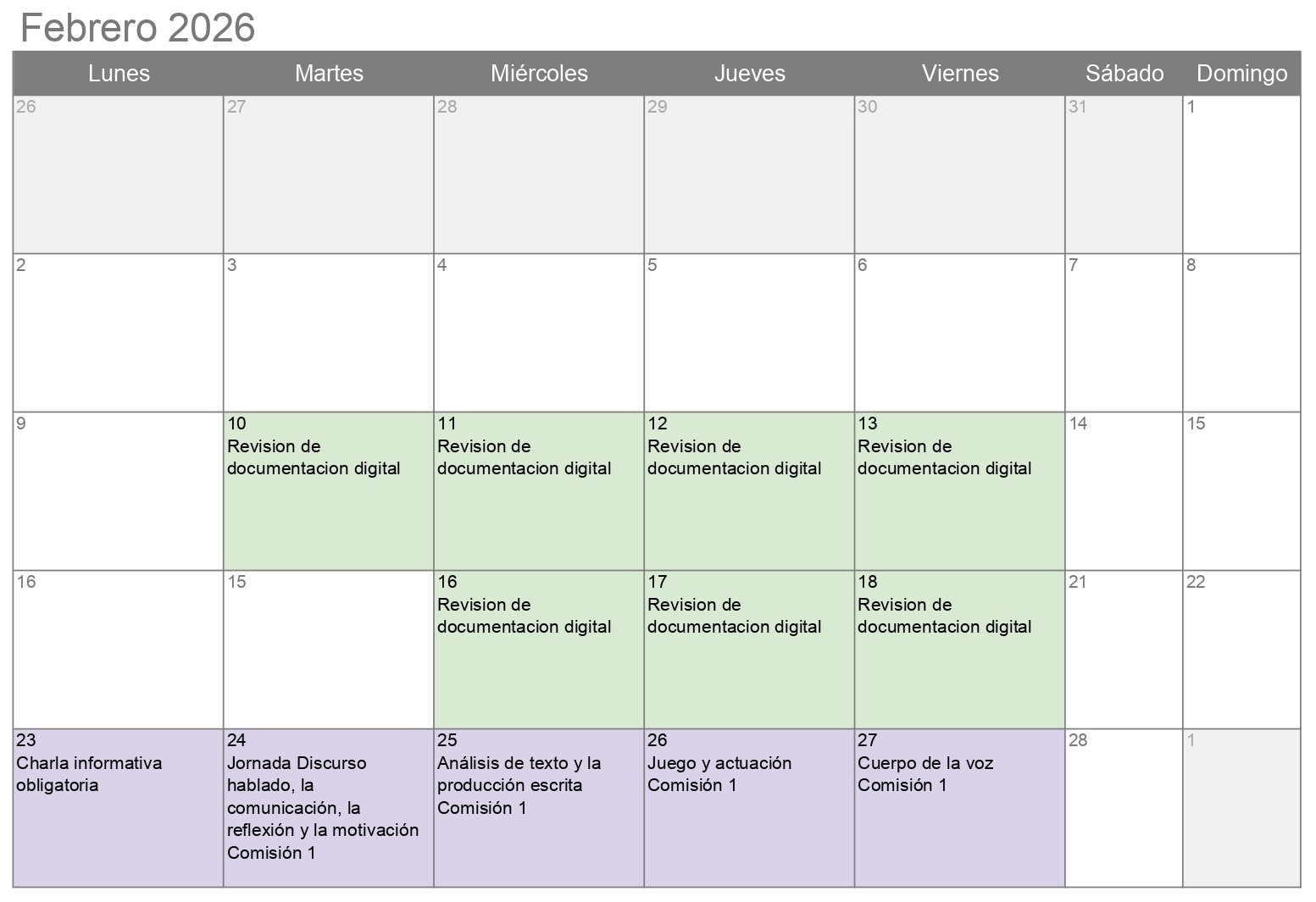 - Se les solicita la lectura de dos textos y el visionado de un espectáculo, de manera obligatoria.