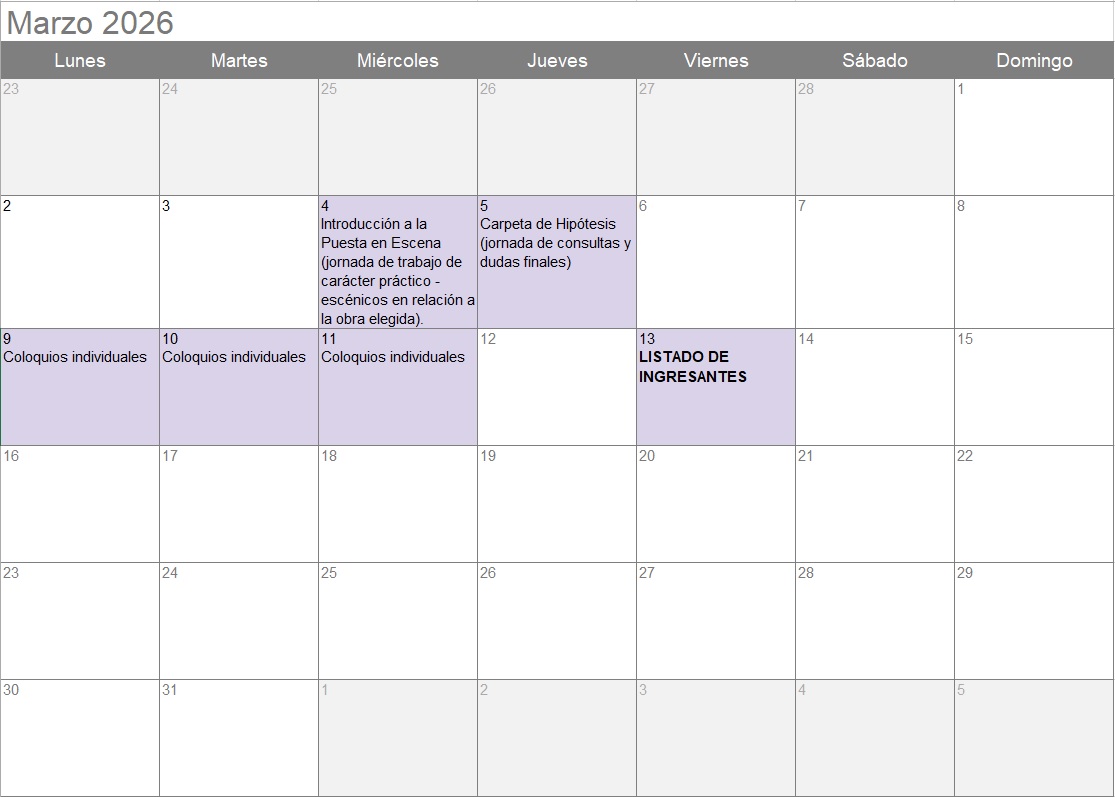 13 DE MARZO DE 2026 PUBLICACIÓN DEL LISTADO DE LAS PERSONAS QUE INGRESEN A LA TECNICATURA SUPERIOR DE PUESTA EN ESCENA.